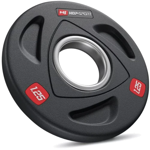 Олімпійські диски 1.25 кг виготовлені з прецизійного чавуну, покриті антиковзним шаром міцної гуми, яка ефективно амортизує диски при їхньому падінні та додатково заглушує звуки при падінні. Кільце з нержавіючої сталі у центрі диска діаметром 51 мм гарантує їм високу міцність та забезпечує точну посадку на штангу. Вага витіснена на дисках, що спрощує їхню ідентифікацію, а також спеціальні пази унікальної форми, що виконують роль ручок і підвищують комфорт використання.