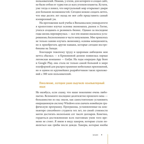 "Студент з порожніми кишенями, але з хорошою ідеєю в голові сьогодні може створити унікальний продукт і послужити на благо суспільства", - пише автор. Як здійснювати такі плани, активно боротися за їх просування, набирати команду і знаходити послідовників своїх бізнес-ідей, а також просуватися далі, зі своєї країни в Кремнієву долину - обитель майбутнього всієї планети, і розповідає книга Лаурсена.