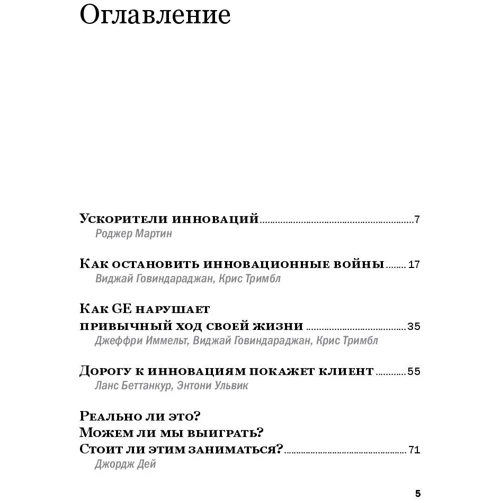 З книги ви дізнаєтеся, як створювати інновації і управляти ними, як можна витягти ідеї для інновацій з повсякденного робочого рутини, чому для оцінки еффектівностіінновацій не слід використовувати стандартні фінансові показники і які критерії використовувати слід. На прикладах таких великих гравців, як General Electrics, BMW і 3M, автори пояснюють, як інтегрувати команду інноваційного проекту в структуру компанії, і викривають міфи і розвіюють страхи, пов'язані з інноваційним процесом в бізнесі.