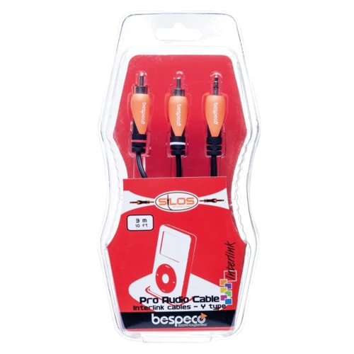 Готовий сполучний стереокабель серії Silos. Підходить для підключення звукового обладнання. Довжина кабелю: 3 м. Роз'єми: Jack "тато" Stereo (Ш3,5 мм) - 2x RCA "тато" Ø6,3 мм. Запакований у блістер. Колір чорний.