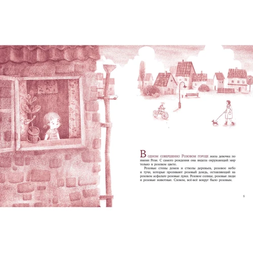 Уявіть собі таке місто, де все-все в рожевому кольорі. Рожеві будинки і машини, рожеві калюжі на рожевому асфальті, рожеве сонце і навіть… рожевий суп! А жителі цього міста вважають свій колір найкращим і ніякого іншого їм не потрібно. Але не дівчинка Розі. Цілими днями вона уявляла і уявляла собі різні кольори. Як же вона мріяла побачити і зелений, і синій, і жовтий, і багато-багато інших кольорів! І одного разу Розі знаходить маленький ключик. Він був… іншого кольору!