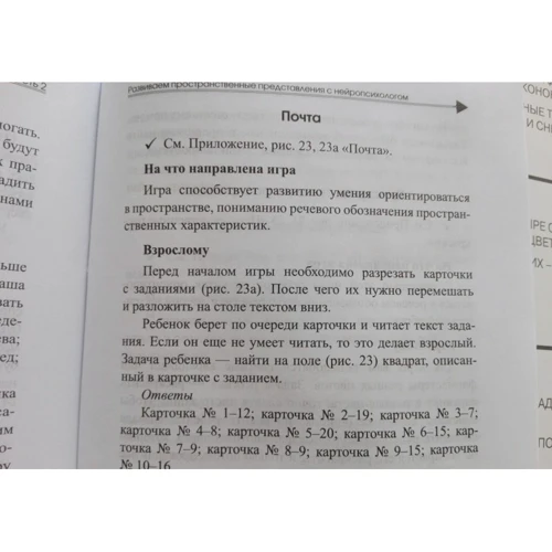 У комплект входить методичний посібник, в якому описані ігри та вправи, що сприяють формуванню просторових уявлень, а також додаток, що включає матеріали для занять, - листи з яскравими і цікавими малюнками. На перший погляд, вміння розрізняти право і ліво, верх і низ не пов'язане безпосередньо зі шкільною успішністю, однак якщо у дитини не сформовані просторові уявлення, їй дуже важко навчитися орієнтуватися в часі, читати, писати, рахувати, розуміти причинно-наслідкові зв'язки, та і в повсякденному житті виникають складності. Пропоновані ігри та вправи допоможуть дитині легко і невимушено освоїтися в просторі, а отже, і позбутися від багатьох проблем в навчанні і не тільки.