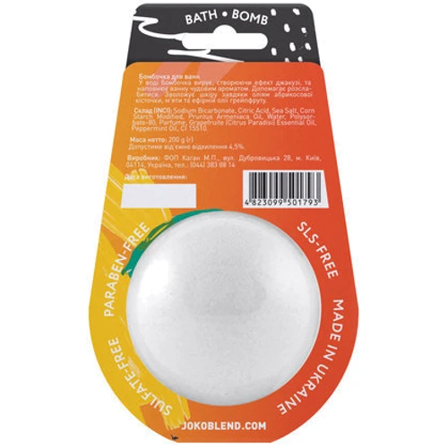 Допомогти розслабитися і відволіктися від усіх звичайних справ зуміє тепла ванна з ароматною двокольоровою бомбочкою. Потрапивши у воду, кулька відразу почне шипіти і розчинятися, наповнюючи кімнату яскравим ароматом грейпфрута і фарбуючи воду в помаранчевий колір. У складі містяться натуральні масла абрикосової кісточки і м'яти, а також ефірне масло грейпфрута. Виражений аромат грейпфрута заспокоює і створює гарний настрій.