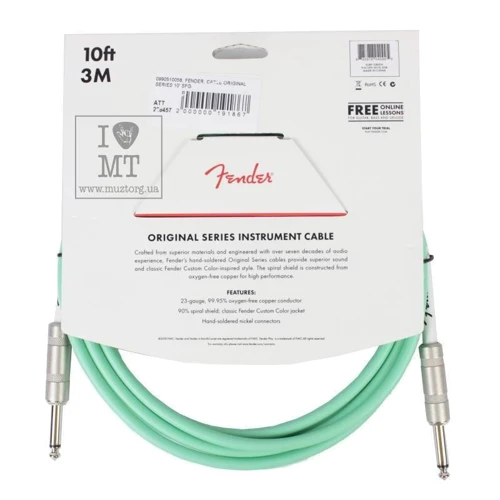 Кабелі Fender Original Series були спроектовані шляхом поєднання міцної конструкції – зі спіральним екрануванням та нікельованими роз'ємами – з неповторним стилем Fender для створення високопродуктивного та надійного кабелю для ваших потреб у студії та на сцені. Оболонка кабелю діаметром 8 мм забезпечує його довговічність. З цими кабелями ви зможете підключитися та грати з впевненістю та спокоєм.