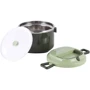 Крім того, контейнер оснащений додатковою кришкою безпосередньо на ємності із клапаном для скидання тиску. Колір пластиковий контейнер зелений, кругла форма.