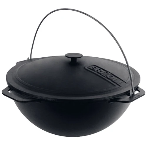 Котел оснащений маленькими литими ручками та дужкою, яка дозволяє підвісити його над вогнем на спеціальному пристосуванні. Для використання його на стаціонарному мангалі або на печі слід скористатися спеціальною підставкою під казан. Знайти її можна у розділі Аксесуари. У комплект входить чавунна кришка, яка закриває казана та дозволяє готувати швидше.
