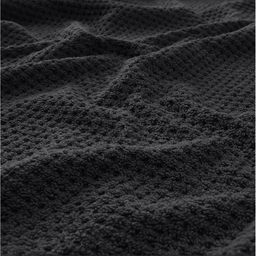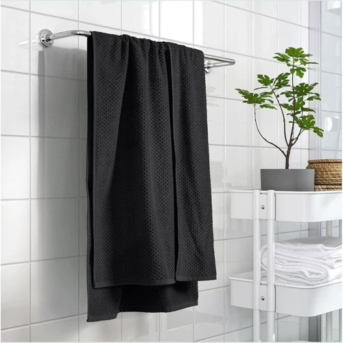 М'який і пухнастий, чорний рушник GULVIAL має середню товщину (500 гсм) і виготовлено зі 100% стійкої бавовни, яка добре вбирає вологу і робить рушник ідеальним для щоденного використання.