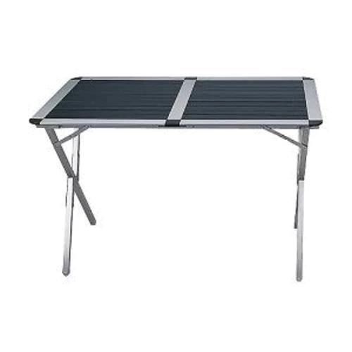 Розкладний алюмінієва рейкова стіл Розміри: 110х70х70 см Каркас: 25Х25 мм квадратні алюмінієві трубки / матові наконечники, алюмінієва рейкова поверхню столу з захисним покриттям.