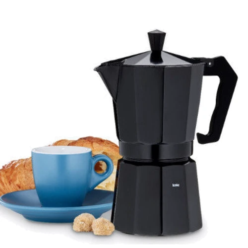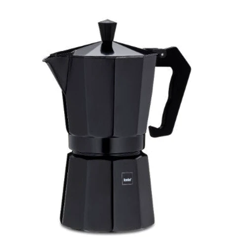 Гейзерна кавоварка Kela Italia розрахована на приготування 6 чашок еспресо. Виготовлена з алюмінію. Експлуатувати просто, потрібно засипати каву та налити воду, поставити на плиту та трохи почекати. Легко очищається навіть у холодній воді. Має сучасний дизайн, зручну термостійку ручку та займає мінімум місця на кухні. Відмінний вибір для дому чи кафе.