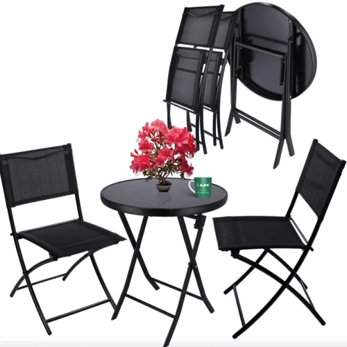 Висока якість матеріалів та надійність конструкції роблять цей комплект меблів витривалим для будь-яких випробувань. Вони легко витримують вагу, забезпечуючи стійкість та безпеку використання. Міцна сталь та загартоване скло гарантують довготривале використання без втрати якості та зовнішнього вигляду. Комплект садових меблів Jumi призначений для використання на відкритому повітрі. Матеріали, з яких виготовлені стіл та стільці, стійкі до впливу ультрафіолетових променів та вологи, що забезпечує тривале збереження кольору та форми. Ви можете бути впевнені, що меблі будуть виглядати як нові навіть після багатьох сезонів використання.
