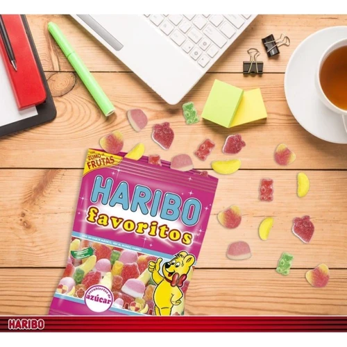 Цукерки Haribo Favoritos Classic - це асорті кращих мармеладних цукерок, створених компанією. Відкривши таку упаковку, в ній можна виявити цукерки у вигляді ведмедиків, ягід, сердечок і пляшечок кока-коли. Кожна з цукерок подарує масу позитивних емоцій і порадує фруктовою начинкою. Таким ласощами можна пригощати і без чаю, а й з гарячим напоєм цукерки відмінно поєднуватимуться.