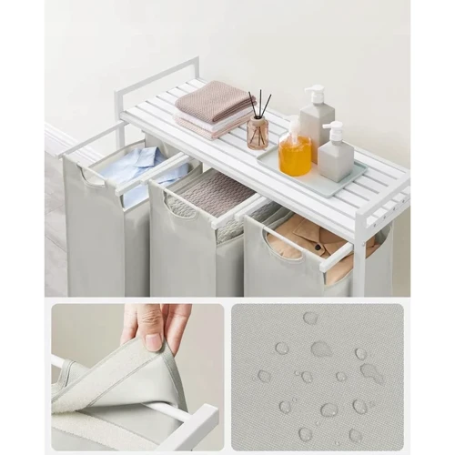 Кожен із кошиків Leobert Chariot легко висувається, що робить процес завантаження та вивантаження білизни максимально зручним. Така конструкція дозволяє швидко та легко дістати необхідні речі без зайвих зусиль. А стільниця зі зручними ручками робить транспортування кошика надзвичайно простим. Це поєднання зручності та стилю робить цей кошик ідеальним вибором для вашого будинку.