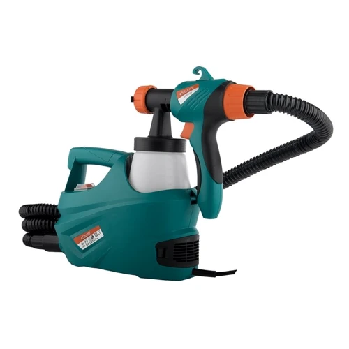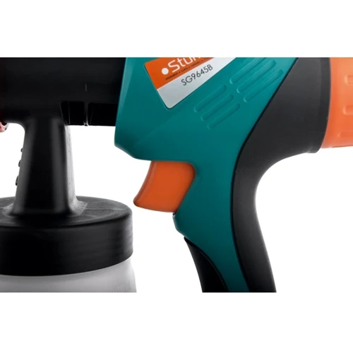 Фарбопульт Sturm SG9645B - продуктивний, зручний в експлуатації пристрій для внутрішніх і зовнішніх фарбувальних робіт. Призначений для роботи зі швидковисихаючими фарбами на водній основі, лаками і поліровками, може використовуватися в авторемонтних майстернях, в суднобудуванні і судноремонті, а також при виробництві побутових фарбувальних робіт. Колекторний двигун потужністю 450 Вт з турбіною, встановлений на фарбопульті Sturm SG9645B, виконаний за технологією подачі великого об'єму повітря при малому тиску, дає можливість швидко і якісно виконати великий обсяг робіт. Можливість ручного регулювання витрати фарби безпосередньо при фарбуванні підвищує якість і знижує витрату рідини. Бачок 0,6 л забезпечує тривалу безперервну роботу. У фарбопульта Sturm SG9645B встановлений повітряний фільтр, що перешкоджає попаданню пилу всередину, легкий доступ до фільтру дає можливість швидко його очистити при необхідності. Відносна компактність і невелика вага (2,4 кг) роблять пристрій зручним в роботі і транспортуванні.