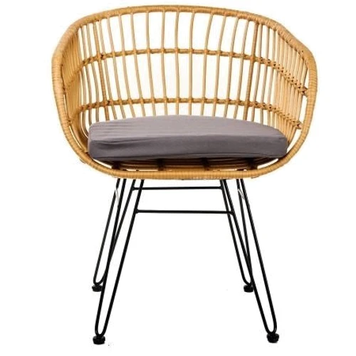 # Крісло Jamaica Каркас крісла Jamaica виготовлений з металу та покритий порошковою фарбою. Конструкція ніжок представлена у вигляді трапеції, по периметру каркаса є ребра жорсткості, завдяки чому виріб має максимальну стійкість. Сидіння, спинка та підлокітники виконані у вигляді плетіння зі штучного ротанга. На сидінні розташована комфортна м'яка подушка, товщиною 30 мм. Крісло Jamaica - незамінний атрибут під час відпочинку.