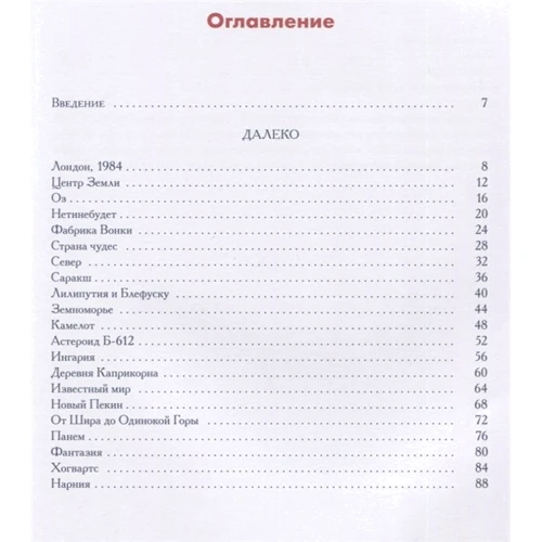 Це й Смарагдове Місто, і Країна Див з «Аліси», і Нетландія з «Пітера Пена», і шоколадна фабрика Роальда Даля, і місця експедиції з «Північного сяйва» Пулмана. Деякі локації - наприклад, планета Саракш з «Залюдненого острова» Стругацьких або Панем з «Голодних ігор» - існують тільки на книжкових сторінках. У інших - як у Лондона в орвеллівському «1984» - є реальні прототипи. Головний читач цієї книги - школяр.