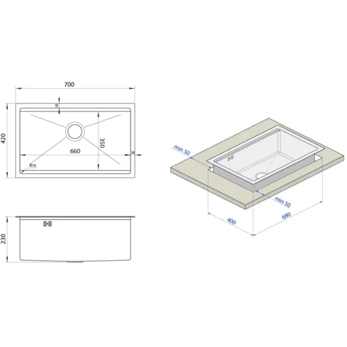 Раковина ручного виготовлення вирізняється високою якістю, практичністю та стійкістю до пошкоджень. Технологія HandMade забезпечує акуратні зварні шви та ретельне шліфування, роблячи краї ще міцнішими.