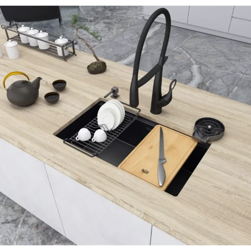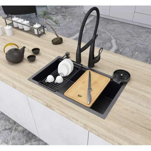 Коли справа стосується вдосконалення вашої кухні, розгляньте варіант із кухонним миттям чорного кольору з металевим блиском. Цей елемент інтер'єру не тільки додасть вишуканості, але й служитиме вам довгі роки.