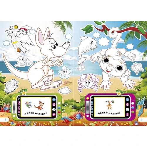 Книжечка для наймолодших художників, які обожнюють малювати фломастерами. Альбом познайомить дитинку з морськими тваринами й водними розвагами. А великі наклейки, які треба приклеїти на телефончик, допоможуть навчитися акуратно й точно клеїти наліпки.