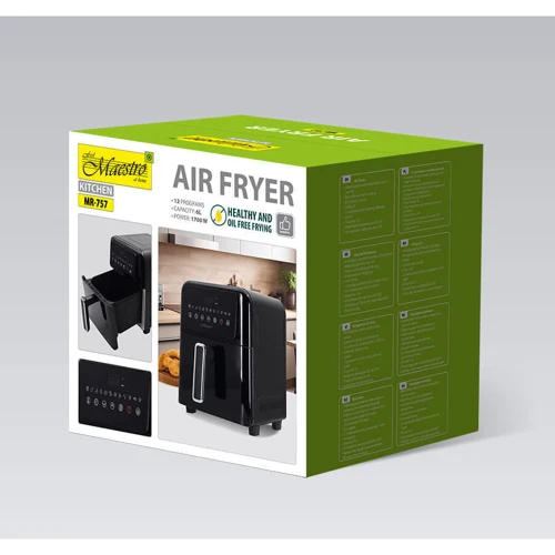 Вишукані страви без олії та жиру разом з аерофрітюрницею Maestro MR757. Завдяки великій потужності нагріву та великій ємності контейнера для приготування, Ваші улюблені страви отримають абсолютно новий смак та аромат.