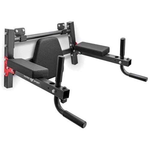 Щоб набір був 100% безпечним у використанні, ми кріпимо його до стіни за допомогою чотирьох точок кріплення або безпосередньо до шведської стінки MH-U204 з тієї ж серії. Ми також дбаємо про ваш комфорт під час тренувань. Комплект оснащений двома м'якими підлокітниками та великою спинкою. Щоб ваші руки не зісковзували під час вправ з ручками, ми обробили гумовим покриттям.
