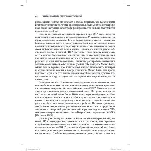 Вправи з книги можна самостійно практикувати вдома, причому знадобляться вони як тим, хто лише підозрює у себе ДКР, так і тим, хто вже роками живе з клінічним діагнозом, перепробувавши кілька курсів психотерапії. Інструменти ACT у книзі допоможуть не лише полегшити симптоми розладу, а й краще зрозуміти свої справжні цінності та навчитися втілювати їх у реальності.