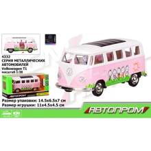 Автобус метал 4332 АВТОПРОМ, 1:38 Volkswagen T1, рожевий колір, откр.двері, 14,5x6,5x7см