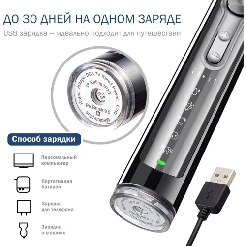ProBrush 9.0 Найкращий вибір для тих, хто хоче мати здорові зуби та чудову посмішку. Зубна щітка підходить, під будь-яку вікову категорію, оскільки оснащена п'ятьма функціональними режимами та трьома режимами потужності, що дає можливість користувачеві персоналізувати налаштування під свої індивідуальні вимоги.