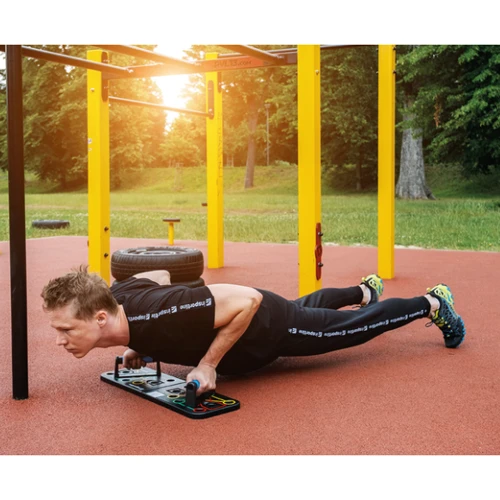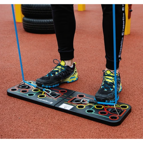 Оскільки дошка має колірне кодування, що включає виділені зони для різних частин тіла, ви можете легко змінювати положення ручок залежно від того, на якій частині ви хочете зосередитися. Більш того, багатофункціональна дошка для віджимань inSPORTline Pushap поставляється з еластичними стрічками, щоб ще більше урізноманітнити ваші тренування. Ця чудова дошка стане невід'ємною частиною тренажерного обладнання.