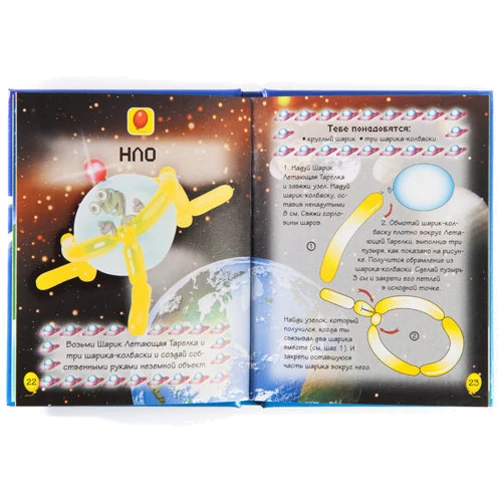З цим набором можна добре повеселитися! З 48-сторінкової книги ти дізнаєшся, як зробити з кульок ракету, літаючу тарілку або приведення, а також отримаєш багато шкідливих порад, як розважитися на вечірці.