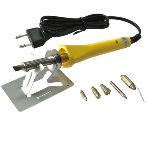 Набір для випалювання Work's W07115 призначений для випалювання малюнків по дереву та натуральній шкірі. Робота з інструментом вкрай проста – впорається навіть новачок. Ця модель має потужність нагрівального елемента 30Вт, чого цілком достатньо для нагрівання до 380 градусів. У комплект поставки входять насадки, та підставка під випалювач.