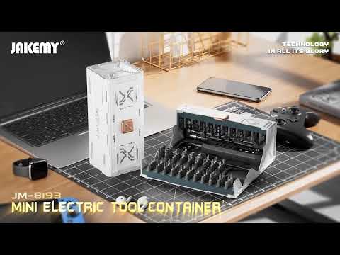 Jakemy JM-8193 – це набір інструментів, що містить 180 предметів: 148 біт, 14 торцевих головок, акумуляторна рука викрутки та додаткові аксесуари для ремонту електроніки (10 медіаторів різної форми, лопатки, прямий та вигнутий пінцет). Набір поставляється в елегантному та стильному кейсі з магнітними замками, що гарантують надійне зберігання та транспортування.
