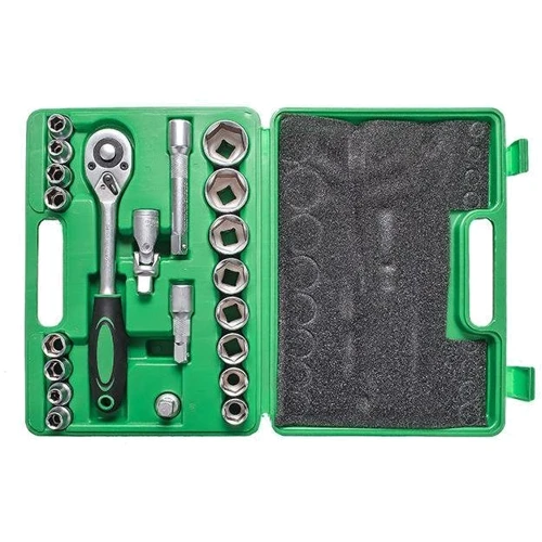 Набір інструментів INTERTOOL ET-6021SP включає в себе 21 одиницю. Інструменти розміщені в кейсі з ударостійкого пластику з надійними замками і зручною ручкою. Основна увага в INTERTOOL ET-6021SP приділено торцевих голівок - в даному наборі їх 16, діаметром від 10 до 32 мм. Крім того, набір інструменту INTERTOOL ET-6021SP включає комірець, ключ з тріскачкою з квадратом 1/2 "- дана модель відрізняється винятковою м'якістю і плавністю в роботі. Всі інструменти виготовлені з хром-ванадієвої сталі - матеріалу виключно високої якості, а також мають спеціальне антикорозійне покриття.