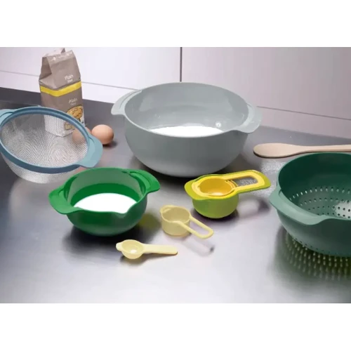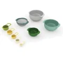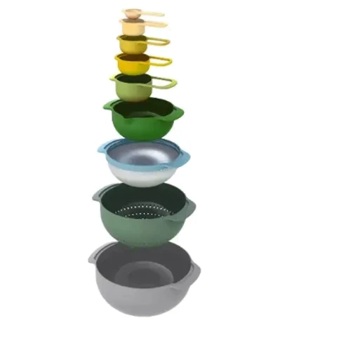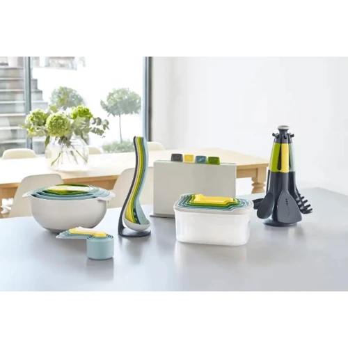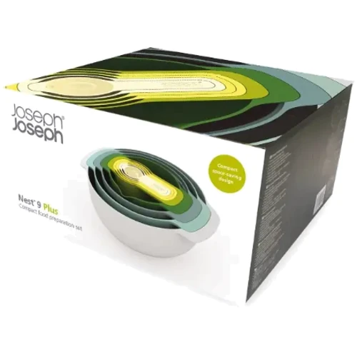 Набір посуду Joseph Joseph Nest складається із 9 предметів і є відображенням високої майстерності бренду. Посуд виготовлений із пластику, не містить бісфенол-А і стійкий до пошкоджень.