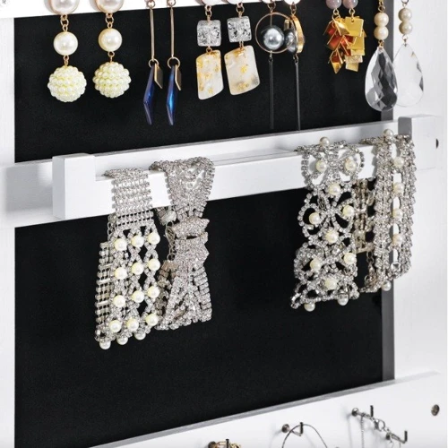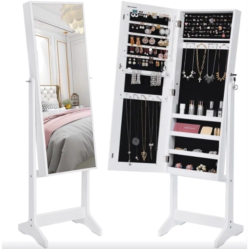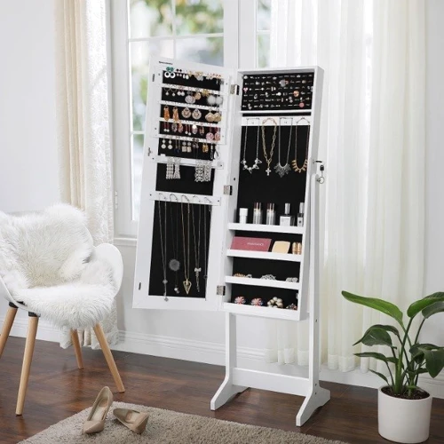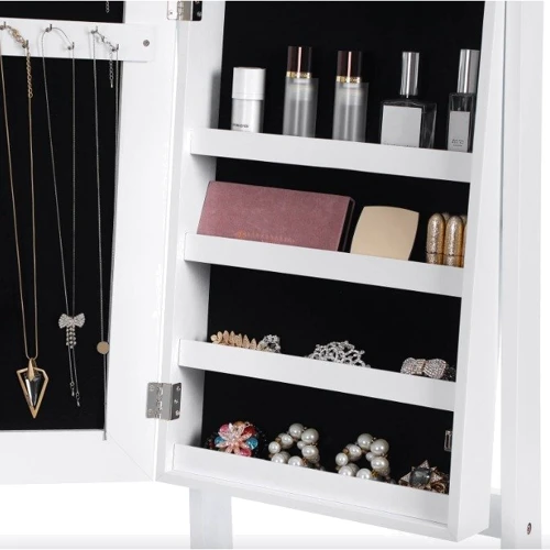 Комбінування шафи для прикрас із дзеркалом – це справжній хіт сучасного дизайну інтер'єрів. Ви не просто заощаджуєте простір, але й отримуєте зручний органайзер для всіх своїх аксесуарів. Завдяки своїм розмірам (41,1 x 36,5 x 151,5), дзеркало-шафа Leobert Inessa ідеально підходить для невеликих просторів. Незважаючи на компактні розміри, вона забезпечує максимум зручності та функціональності. Вам більше не доведеться шукати кільця, сережки або намисто по всій квартирі - все буде акуратно зберігатися в одному місці, завжди під рукою, готове до використання.