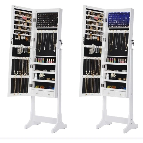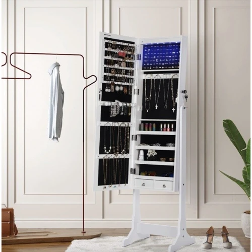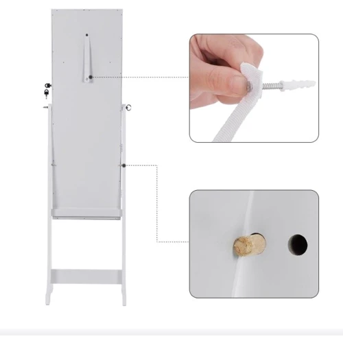 Комбінування шафи для прикрас із дзеркалом – це справжній хіт сучасного дизайну інтер'єрів. Ця дзеркало-шафа має достатньо місця для зберігання всієї вашої біжутерії, косметики та аксесуарів. Від намиста до сережок, від кілець до шпильок для волосся – все можна зручно організувати. Завдяки своїм розмірам (41 х 36,5 х 151см), дзеркало-шафа Leobert Insignia ідеально підходить для невеликих просторів. Незважаючи на компактні розміри, вона забезпечує максимум зручності та функціональності. Вага всього 10,8 кг дозволяє легко переміщати її за потребою, а елегантні ніжки надають виробу легкість та витонченість.