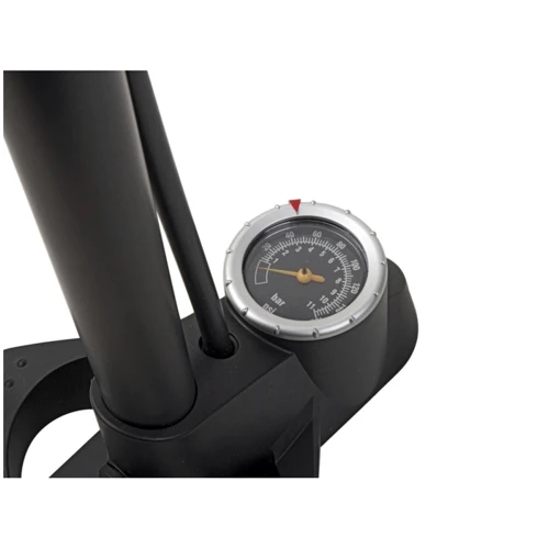 Насос підлоговий Author AAP Air Turbo з шлангом і манометром, корпус алюмінієвий AL6061 з подвійною головкою під всі види AV/FV/DV вентилів з важелем фіксації, Т-подібна ручка, титановий колір, максимальний тиск 160 Psi/1.1 MPa. Вага 850 грам.