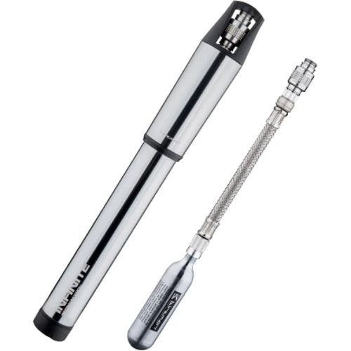 Birzman Infinite MTB (Threaded) з картриджем CO2 - це високоякісний ручний насос для використання в польових умовах з максимальним робочим тиском в 90 psi (6,12 Атм). Він розрахований для експлуатації як з звичайними колесами, так і з безкамерними, адже в комплект включені два CO2 картриджа ємністю 16 грам. Картриджі дозволяють встановити покришку в пази обода, за рахунок високошвидкісного нагнітання повітря в колесо.