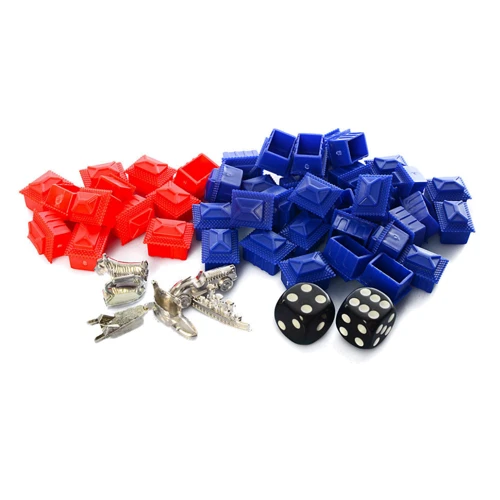 Комплектація: ігрове поле із зображеннями хмарочосів, картки, гроші, два кубика, жетони з логотипами і офісами, фішки, вежі, інструкція.