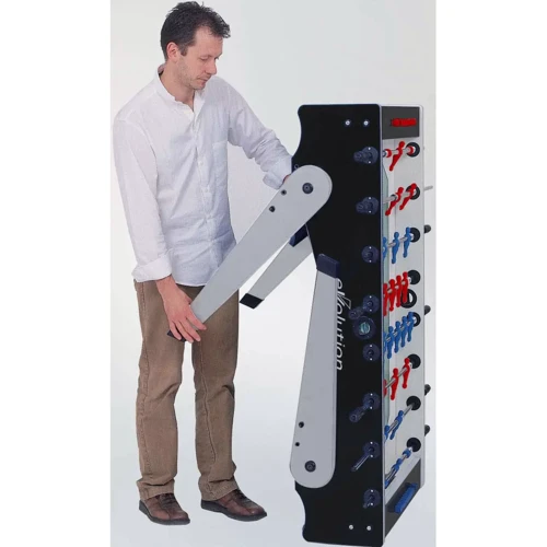Вишуканий стіл для настільного футболу Garlando Foldy Evolution (FOLDYNEULVL) зі складними ніжками для компактного зберігання ідеально підходить для невеликого простору. Міцний дизайн столу відрізняється елегантним поєднанням чорного та сріблястого кольорів, натхненним стилем ганьби-тік. Модель виготовлена безпосередньо в Італії із високоякісних матеріалів, що забезпечують довговічність та задоволення від гри з урахуванням специфічних вимог, яким має відповідати футбольний стіл. Цей стіл відрізняється надійністю та стабільністю, що робить його придатним для гри в будь-якому місці, від будинку до офісу та бару. Настільний футбол Garlando Foldy Evolution (FOLDYNEULVL) відповідає європейським стандартам безпеки EN 71-1, 71-2, 71-3 та 71-9.