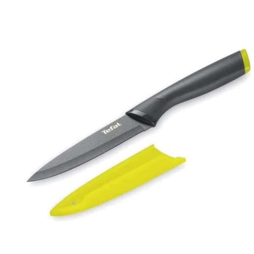 Ніж Tefal K1220714 з лезом з нержавіючої сталі поєднує в собі відмінні характеристики різання, особливу стійкість і високий комфорт для користувача. Він має довжину леза - 12 см, що робить його універсальним для будь-яких кухонних операцій. Працювати з ним суцільне задоволення, будь-які фрукти, овочі, м'ясо і риба будуть нарізатися легко і швидко. Ергономічна, м'яка на дотик рукоятка ножа добре лягає в руку і забезпечує зручний, надійний захоплення. Ніж Tefal K1220714 включає чохол для безпечного поводження, який запобігає появі подряпин на лезі і дозволяє безпечно перевозити ніж в разі потреби.