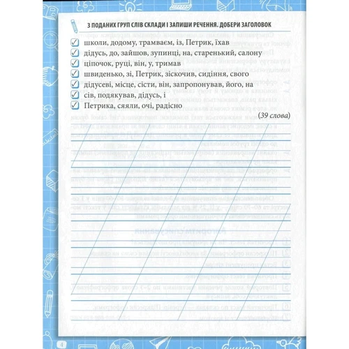 Матеріали зошита сприятимуть організації ефективної роботи зі списування як навчального прийому, що спямований на розвиток в учнів третього класу зорової пам'яті, здатності до імітації, орфографічної пильності, техніки письма, вміння порівнювати написане зі зразком.