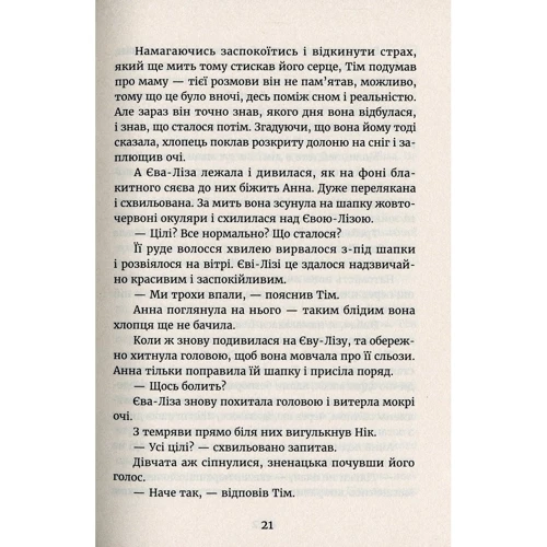 У безмежно темному і засніженому світі загубити одне одного дуже легко. Та що там, у цій темряві можна загубити навіть самого себе. Вирушаючи у подорож, Єва-Ліза, Тім, Анна та Нік хочуть лише одного — знайти Макса. Та чи можливо знайти когось, коли не знаєш, де шукати, а супроти тебе — сама безмежність? Водночас чи можна залишатися на місці, коли десь далеко, там, де тиша, неодмінно мають бути відповіді? Щоправда, можливо, зовсім не ті, яких сподіваєшся…