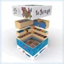 Це велика коробка (на 70% вища за звичайну коробку гри "Острів котів") з дерев’яним органайзером усередині. В органайзері помістяться компоненти базової гри "The Isle of Cats" і 5 доповнень, а також усі промки та аксесуари.