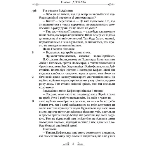 «Держава» Платона є одним із найцікавіших і найоригінальніших творів давньогрецького мислителя. Обґрунтовуючи свою модель політичного устрою, Платон вимальовує картину ідеальної держави, у якій торжествують ідеї Добра й Справедливості, ліквідовано приватну власність, створено найдоцільнішу систему виховання й навчання, проголошено рівність чоловіків і жінок, а владу у ній обіймають справжні філософи. Кожний за своїми здібностями у такій державі повинен займатися своєю справою, досконало володіючи своїм мистецтвом. Написана у 77–60 рр. IV ст. до н. е., вона й до сьогодні є натхненням до наукового пошуку й джерелом державотворчих ідей.