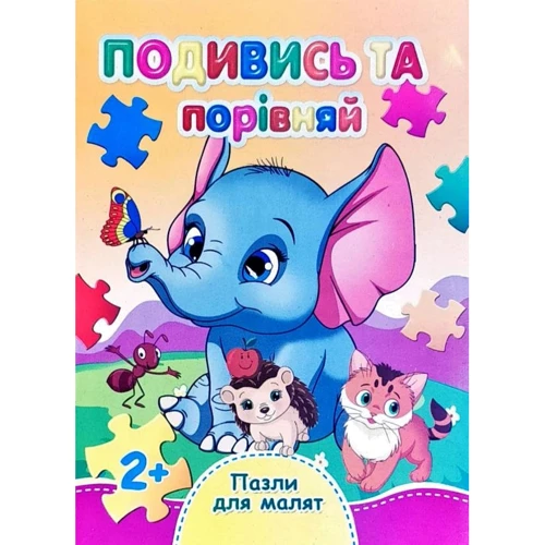 Пазли для малят «Подивись та порівняй» - це книжка за допомогою якої, ваша дитина навчиться порівнювати: великого з малим, веселого з сумним, повільного з швидким. На кожній сторінці книги є віршик, ілюстрація до нього та картинка - пазл, а також запитання. Ця розвивальна книжка для малюків дуже весела і дуже добра, а також зручна для користування маленькими дітьми.