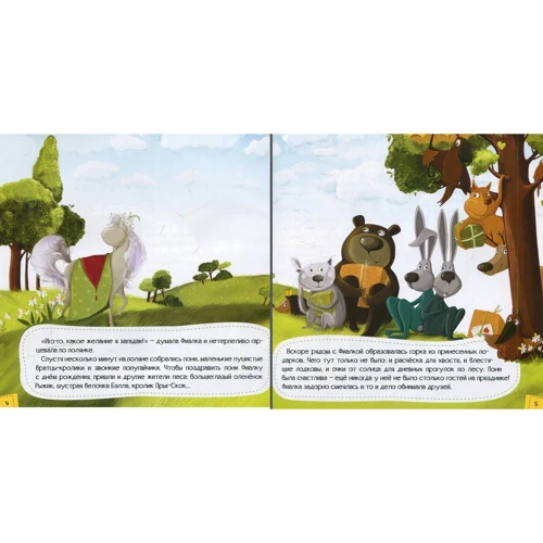 Книга, яку ви тримаєте в руках, не зовсім звичайна. Вона наповнена добротою та людяністю, справжньою дружбою та щирістю — тим, чого так не вистачає у сучасному житті. Головна героїня поні Фіалка у свій другий день народження - найголовніший у житті кожного конячка - може загадати одне-єдине бажання, яке, за стародавніми переказами, обов'язково здійсниться. Що тут розпочалося! Кожен із друзів поні взявся їй допомагати, але що ж вибере іменинниця?