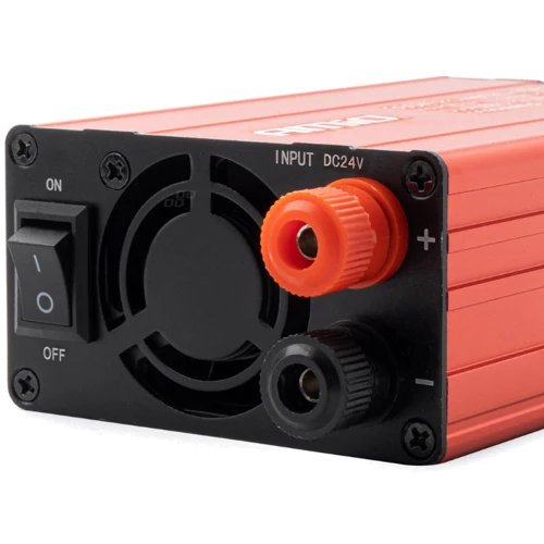 Якісно зроблений автомобільний перетворювач напруги, перетворює постійний струм 24 на змінний 230 В із модифікованим синусоїдальним сигналом. Має 2 USB-виходи для живлення 5-вольтових пристроїв.