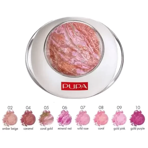 Pupa Luminys – природно висвітлює та підкреслює вилиці. Легка шовковиста пудра ідеально тримається багато годин. Інноваційна технологія запікання забезпечує максимальну стійкість рум'ян та ніжну текстуру. Містить захисну олію жожоба, яка запобігає висиханню шкіри. Троянда запікається за нормальної температури близько 60° години. Технологія дозволяє одержати компактний продукт без складок. Цей процес забезпечує збереження частини води та збереження природних властивостей активних інгредієнтів. Завдяки запіканню досягається неймовірно ніжна консистенція, що легко поєднується і наноситься як сухим, так і вологим способом.