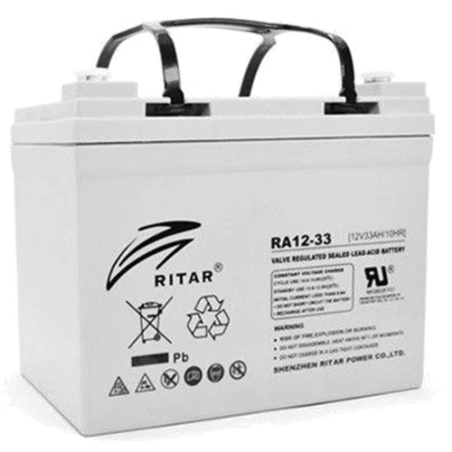 Батарея до ДБЖ Ritar AGM RA12-33, 12V-33Ah (RA12-33).Акумуляторна батарея для джерела безперебійного живлення є невід'ємним елементом, завдяки ній, устаткування продовжує працювати при відключеній електроенергії. Акумуляторні батареї вбудовуються в ДБЖ і практично не вимагають ніякого обслуговування. RITAR - свинцево-кислотна, не обслуговуюча батарея з номінальною напругою відповідним заявленому. Також дана батарея характеризується низьким рівень саморозряду.