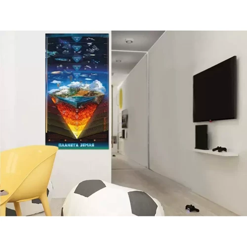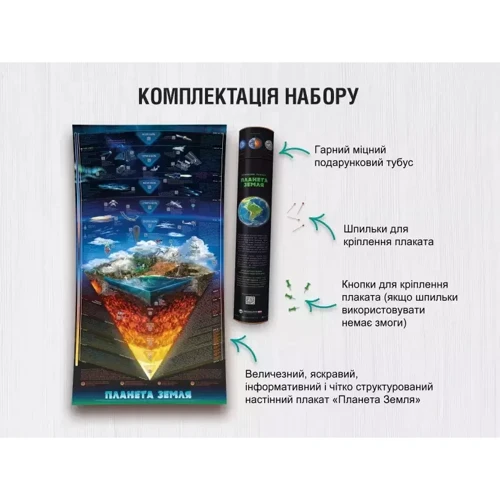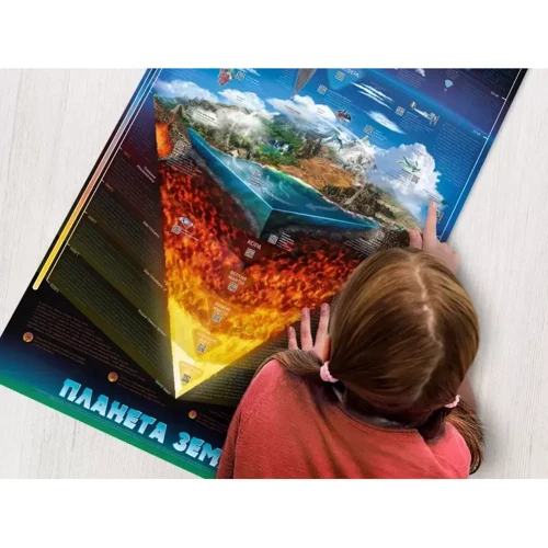 Унікальний розумний плакат здатний надовго привернути увагу кожної дитини. Адже подорож від центру земної кулі до найвищих шарів атмосфери — справжня пригода для юного дослідника, яка не просто захоплює, а й навчає.